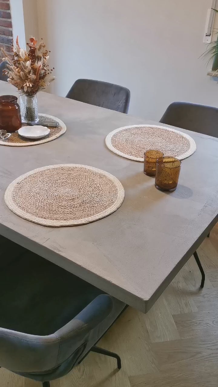 Die Platte besteht aus langlebigem, robustem Betonputz, der doppelt mit Zwei-Komponenten Kunstharz aufwendig versiegelt wird. Als Grundlage werden Siebdruckplatten vom Holzhändler genutzt.